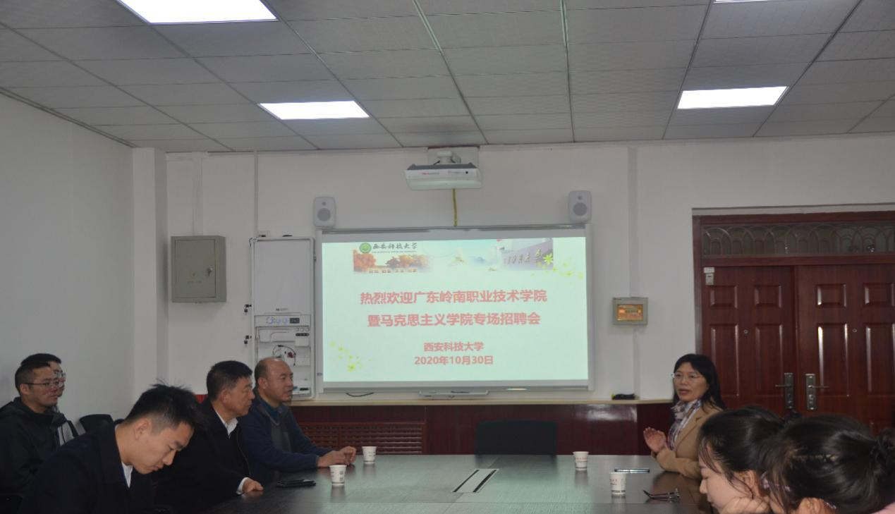 10月30日,广东岭南职业技术学院党委书记、副校长柴克生,组织部部长易中华,koko体育官网院长韩丽萍一行三人来我校举行koko体育官网专场招聘会。我校学工部部长李建明、副部长孙再罗,koko体育官网副院长张铭钟,马克思主学院研究生辅导员韩帅及2021届应届毕业生参加招聘会。