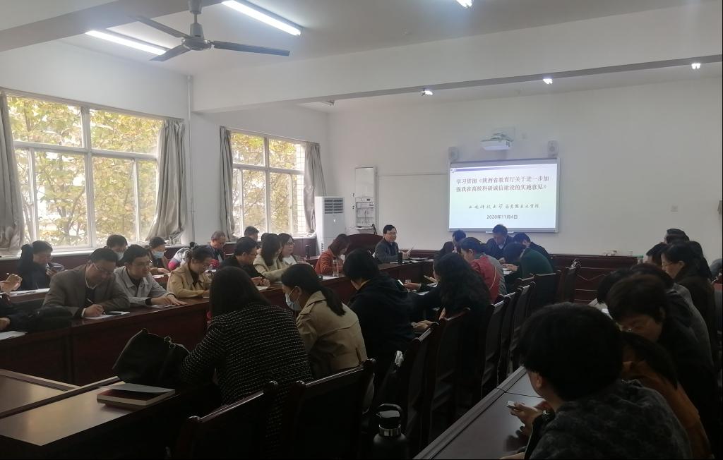 会议中,副院长张铭钟带领全体教师学习了《陕西省教育厅关于进一步加强我省高校的实施意见》(陕教〔2020〕171 号)文件精神,要求思政课教师必须筑牢思想基础,加强自身的学术道德和诚信。koko体育官网制定了“落实《陕西省教育厅关于进一步加强我省高校的实施意见》的举措”,加强对思政课教师和研究生的科研诚信教育和管理。