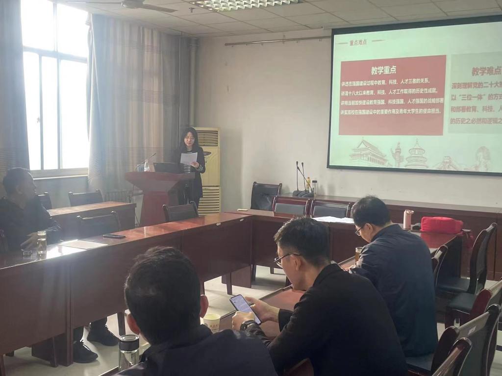教研会中张娜老师进行了赛前试讲演练,从选题立意、教学环节设计、智慧教学手段的运用等方面进行了逐一展示。与会老师们分别从讲课内容、逻辑结构、课程设计、PPT制作、教学创新点以及语言教态等方面对各参赛教师进行了细致入微地点评,提出了中肯的建议和指导,使参赛教师感到受益匪浅。