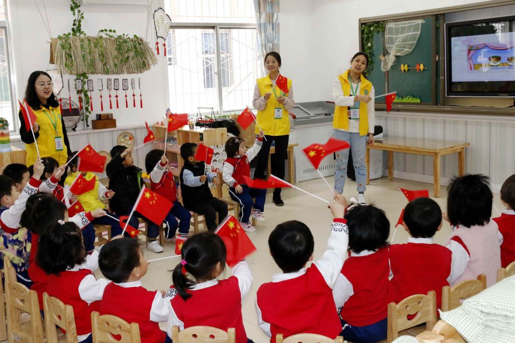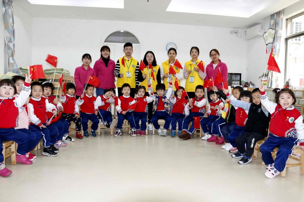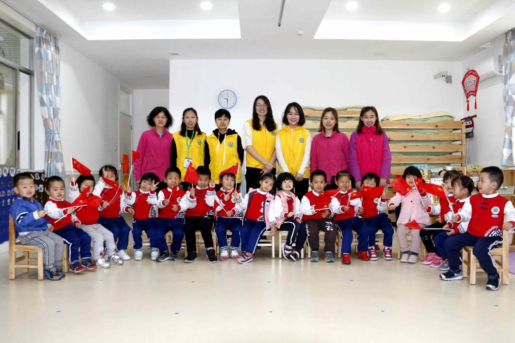 koko体育志愿者和小朋友一起参加升国旗仪式