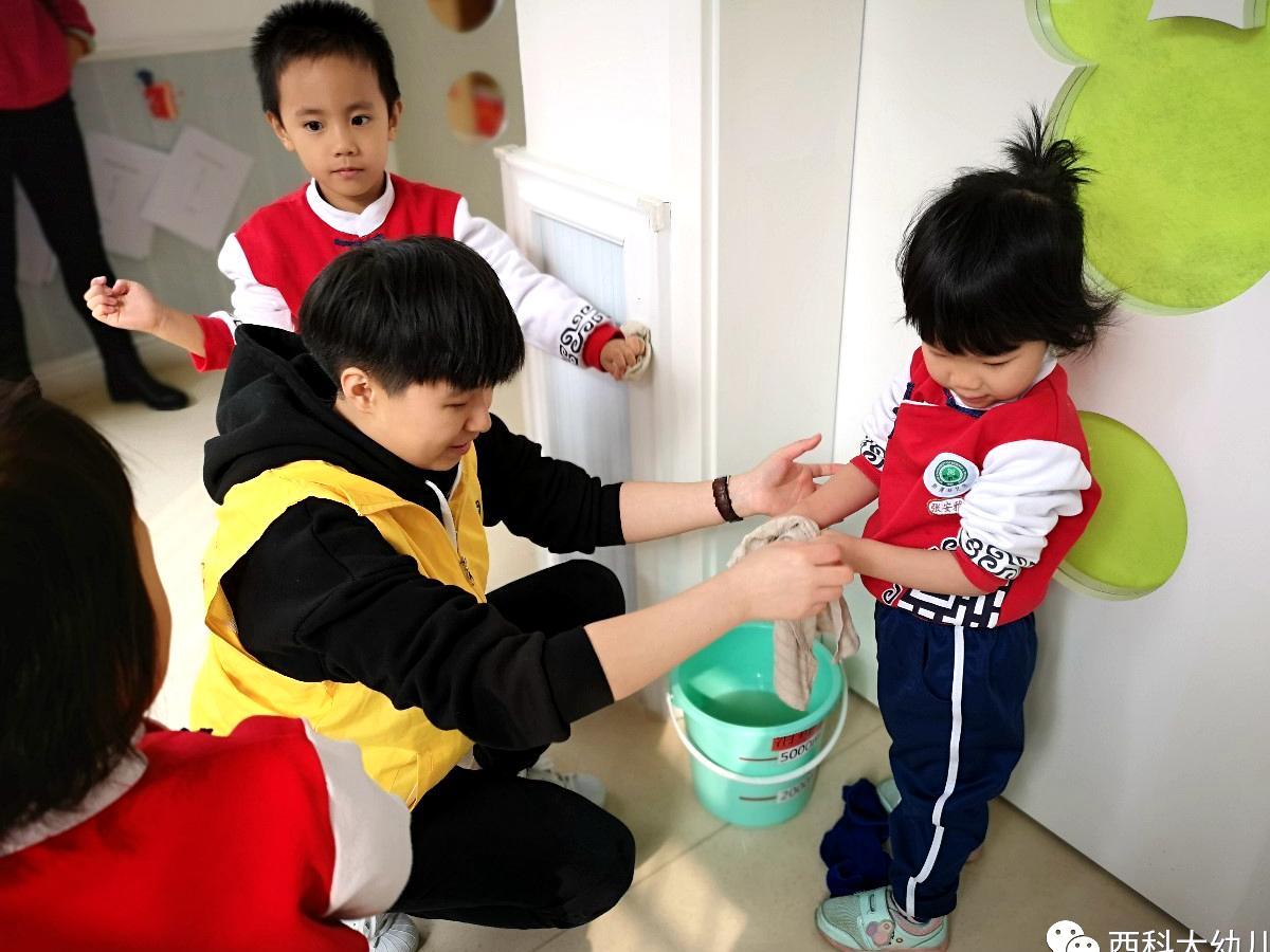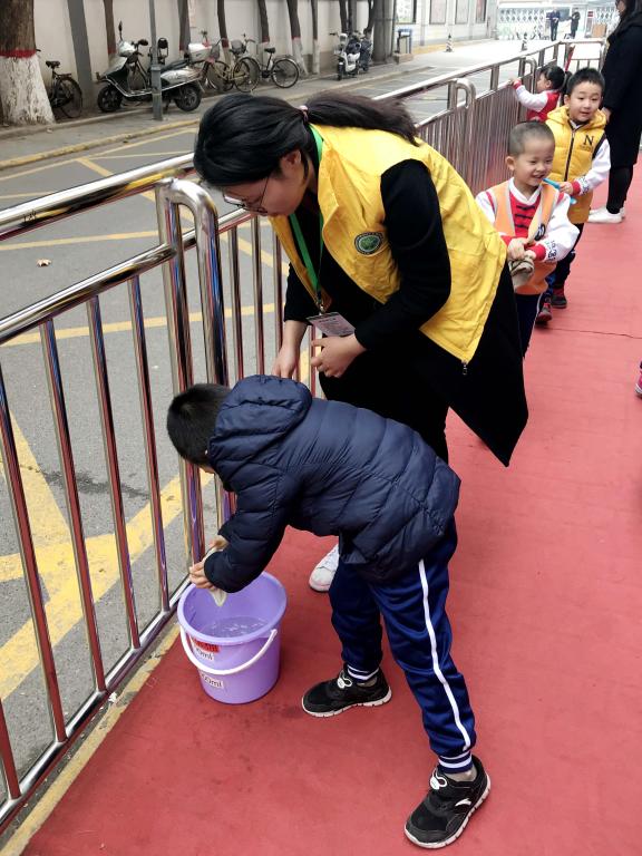 下午,志愿者们带领小朋友用实际行动践行“学雷锋,做好事”。一起捡垃圾、清树叶,擦拭栏杆,将幼儿园的角角落落擦拭的一尘不染。