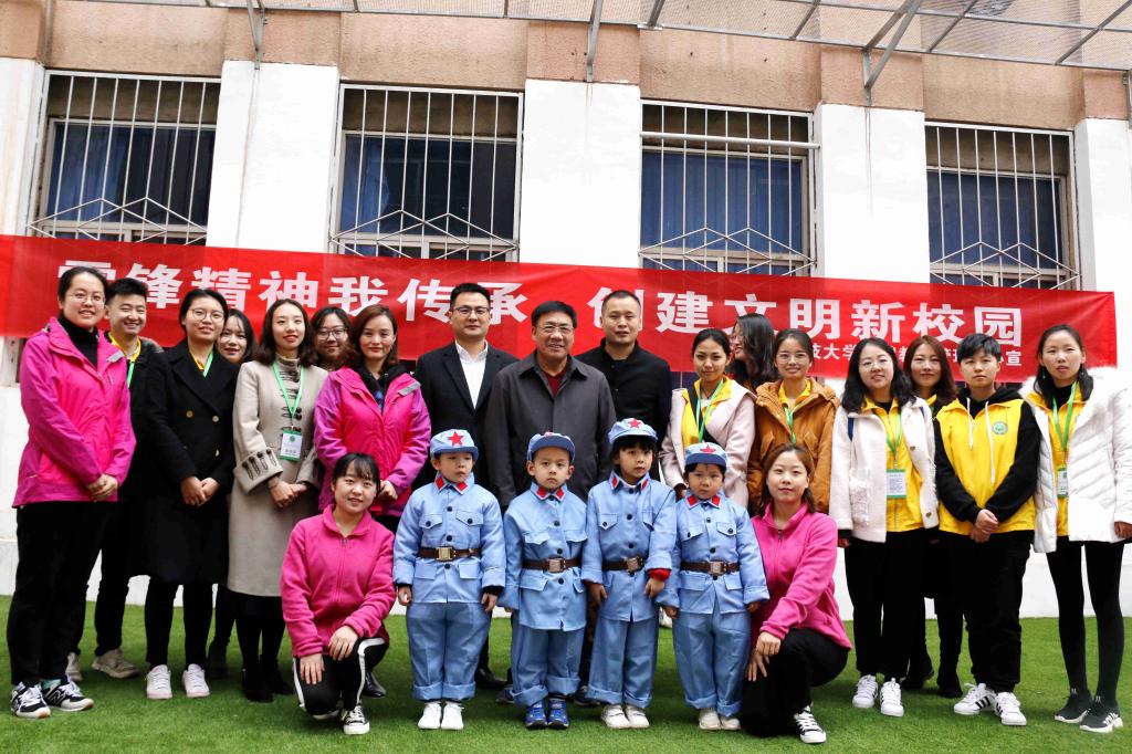 讲雷锋故事 学雷锋精神第三小组成员和幼儿园师生合影