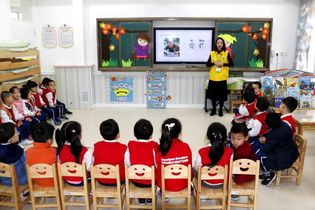 张荠文等同学教附属幼儿园小朋友唱《学习雷锋好榜样》歌曲