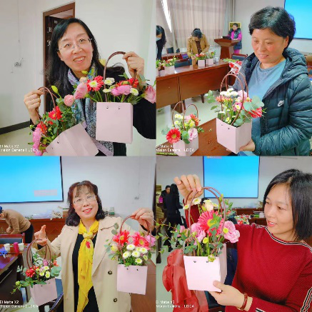 活动在欢声笑语中落下帷幕,大家捧着亲手创作的作品合影留念。通过此次花艺沙龙,不仅增加了大家对插花艺术的了解,还提高了审美情趣。更让女教工在繁忙的工作之余,释放了压力,进一步增强了凝聚力,让女神们度过一个有意义的节日。