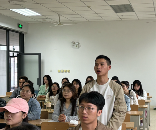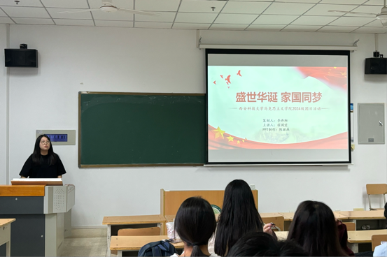本次团日活动由组织委员程闽君主持。在活动中,两位同学的精彩发言赢得了阵阵掌声。李锦燕同学首先回顾了新中国成立以来的辉煌成就,强调了青年学子肩负的历史使命,倡议大家以更加饱满的热情投身于学习和社会实践中,强调青年一代要继承和发扬革命先辈的光荣传统,以实际行动践行社会主义核心价值观。李俊昇同学则从个人视角出发,分享了自己在学习马克思主义理论过程中的心得体会,他认为国庆节不仅是一个庆祝的日子,更是一个反思和展望的时刻,呼吁同学们将个人梦想融入国家发展大局,为实现民族复兴贡献青春智慧。