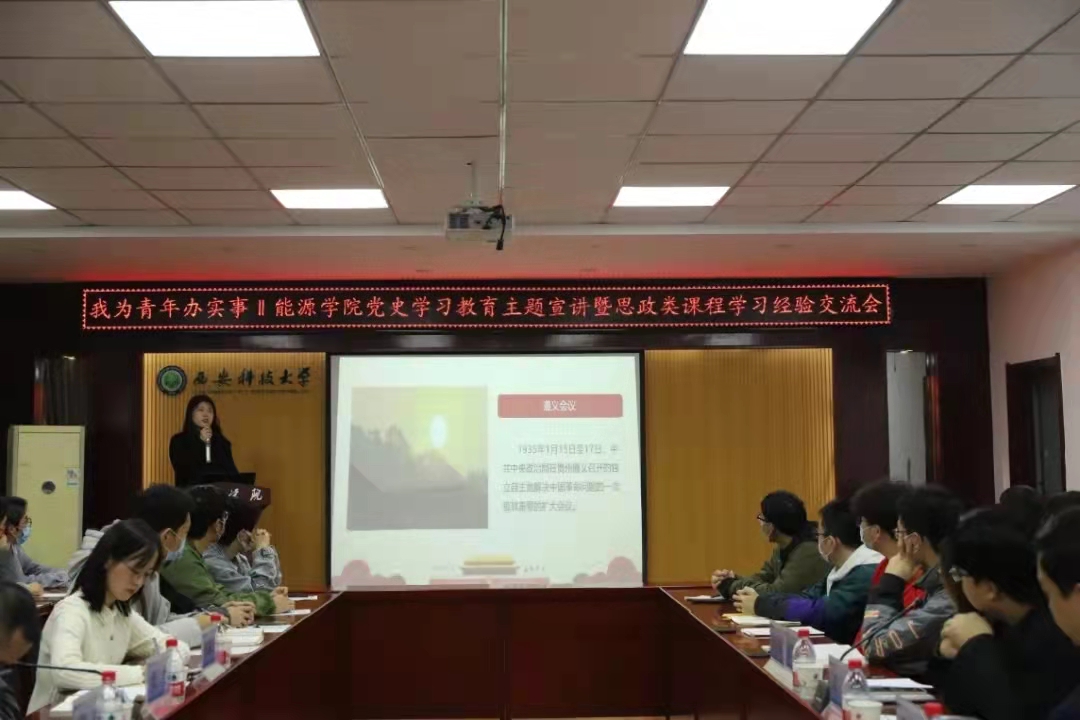 11月4日,能源学院党史学习教育宣讲暨思政类课程学习经验交流会在14号教学楼323会议室举行。能源学院学工办主任、团委书记万超、2020级辅导员尕永泰,koko体育官网学工办主任、团委书记韩帅,研究生张杰、权颖庆,许迪迪、王庭钰参加交流会,本次交流会由能源学院团委副书记王雪琪主持。