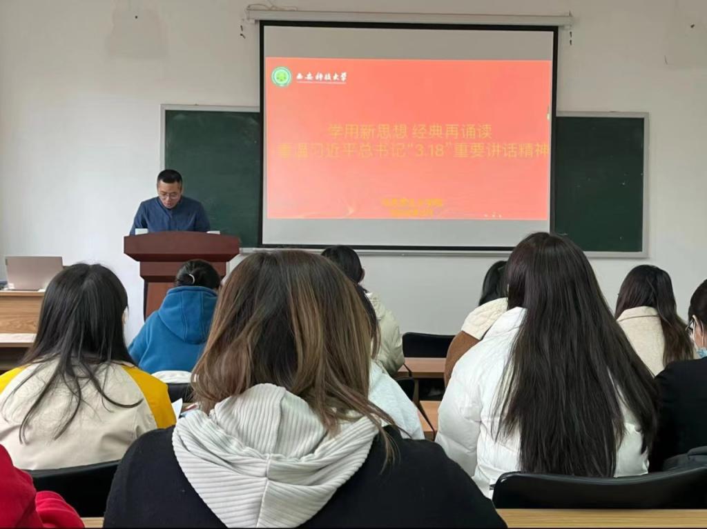 韩帅主持领读了习近平总书记“3·18”讲话的原文,并就学院工作实际进行了感悟分享。他指出,思政课是落实立德树人根本任务的重要课程,要深入学习领悟习近平总书记关于思政课的作用和定位,马院青年要满怀激情,打好基础,学好专业课,为将来做好思政课打下坚实基础。