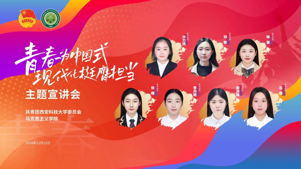 为深入学习贯彻习近平新时代中国特色社会主义思想,全面落实习近平总书记关于青年工作的重要思想,推动党的创新理论“青年化”阐释,进一步激发广大青年学生为中国式现代化挺膺担当的使命感和责任感,坚定理想信念,勇担时代使命,同时发挥好青年学生干部的模范带头作用,团结凝聚西科大青年奋进力量。我校青年讲师团于12月12日晚在临潼校区骊山校园煤炭科技中心一楼报告厅展开宣讲,宣讲会由校团委副书记杨忠源主持,我校第十八期“青马工程”大学生骨干培训班全体学员现场聆听。