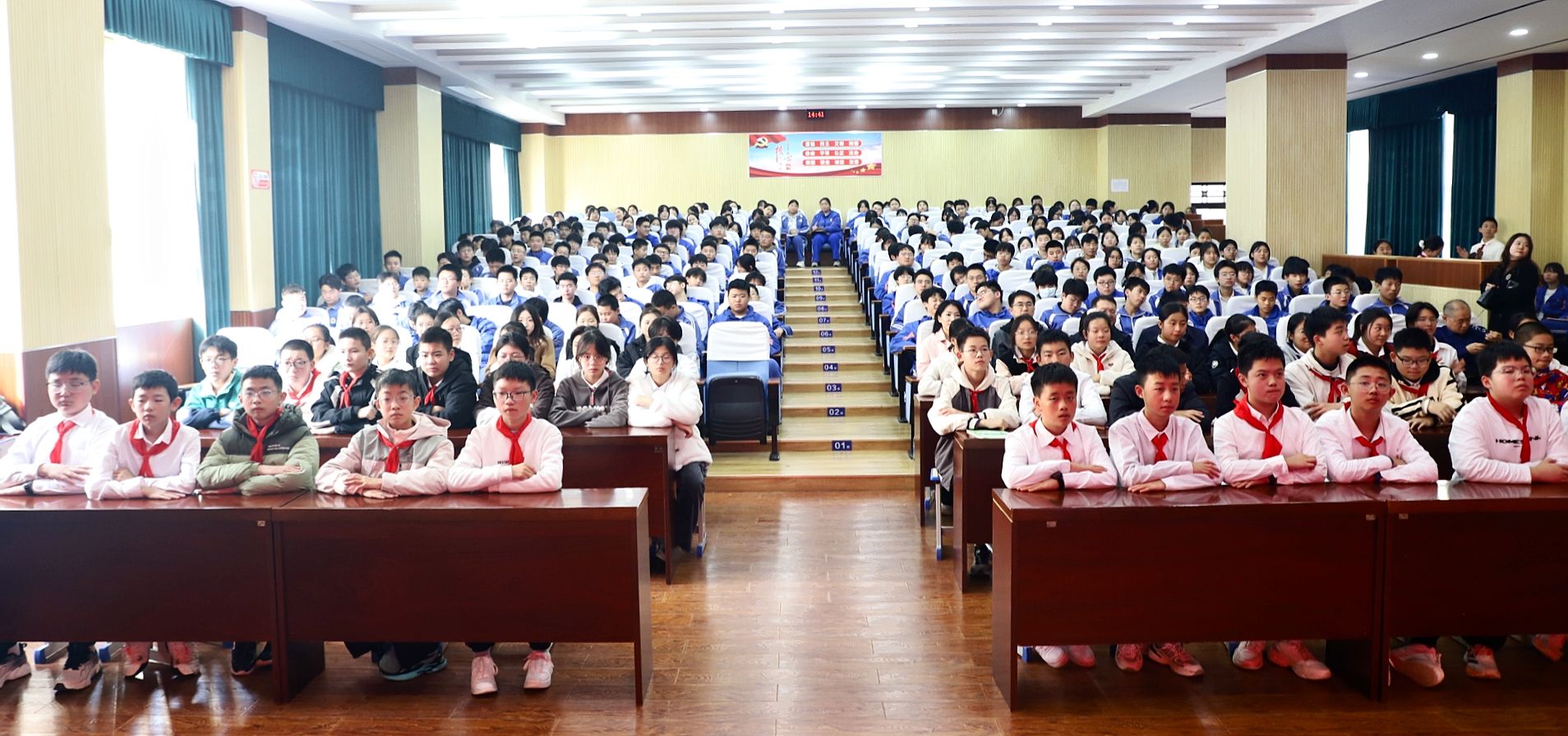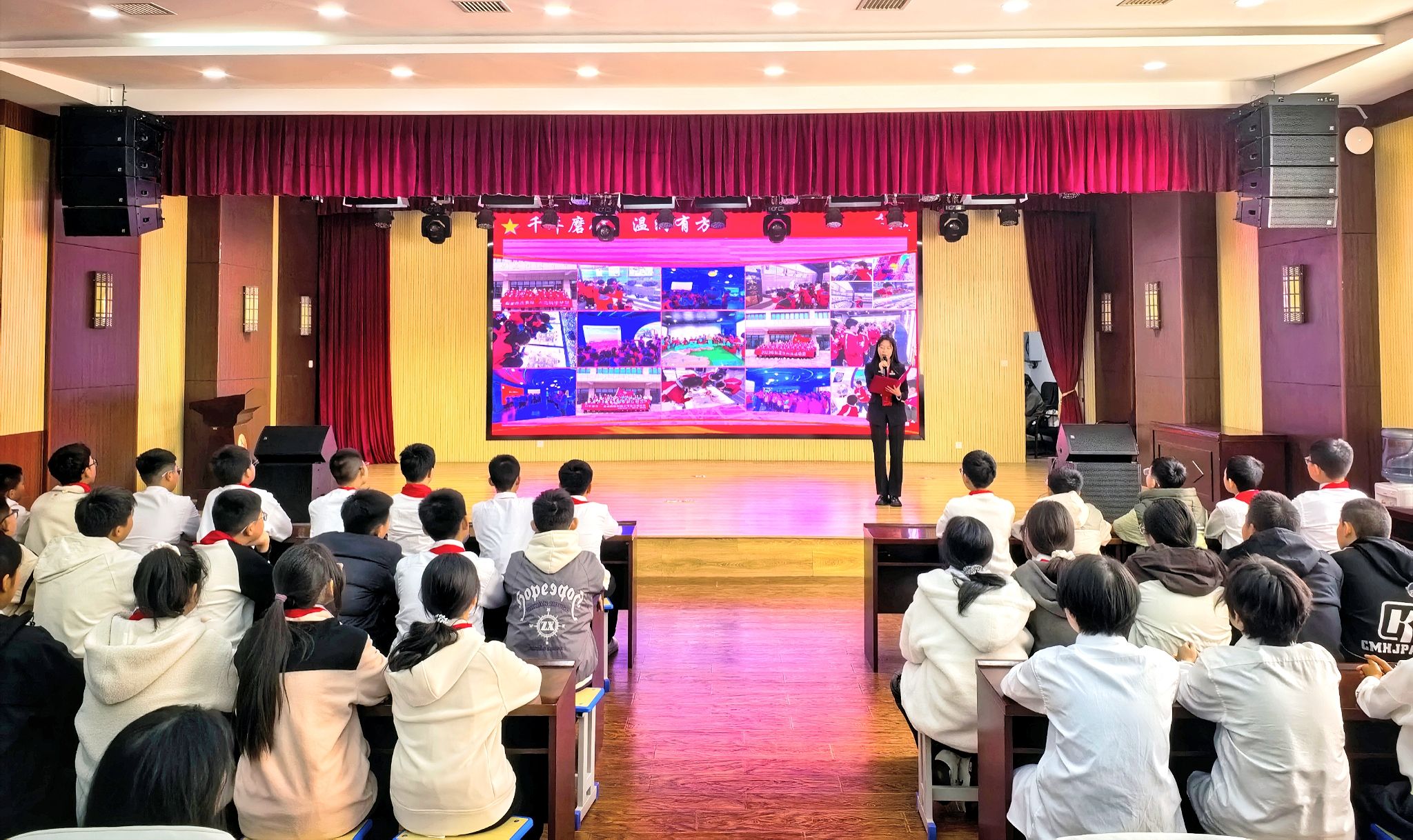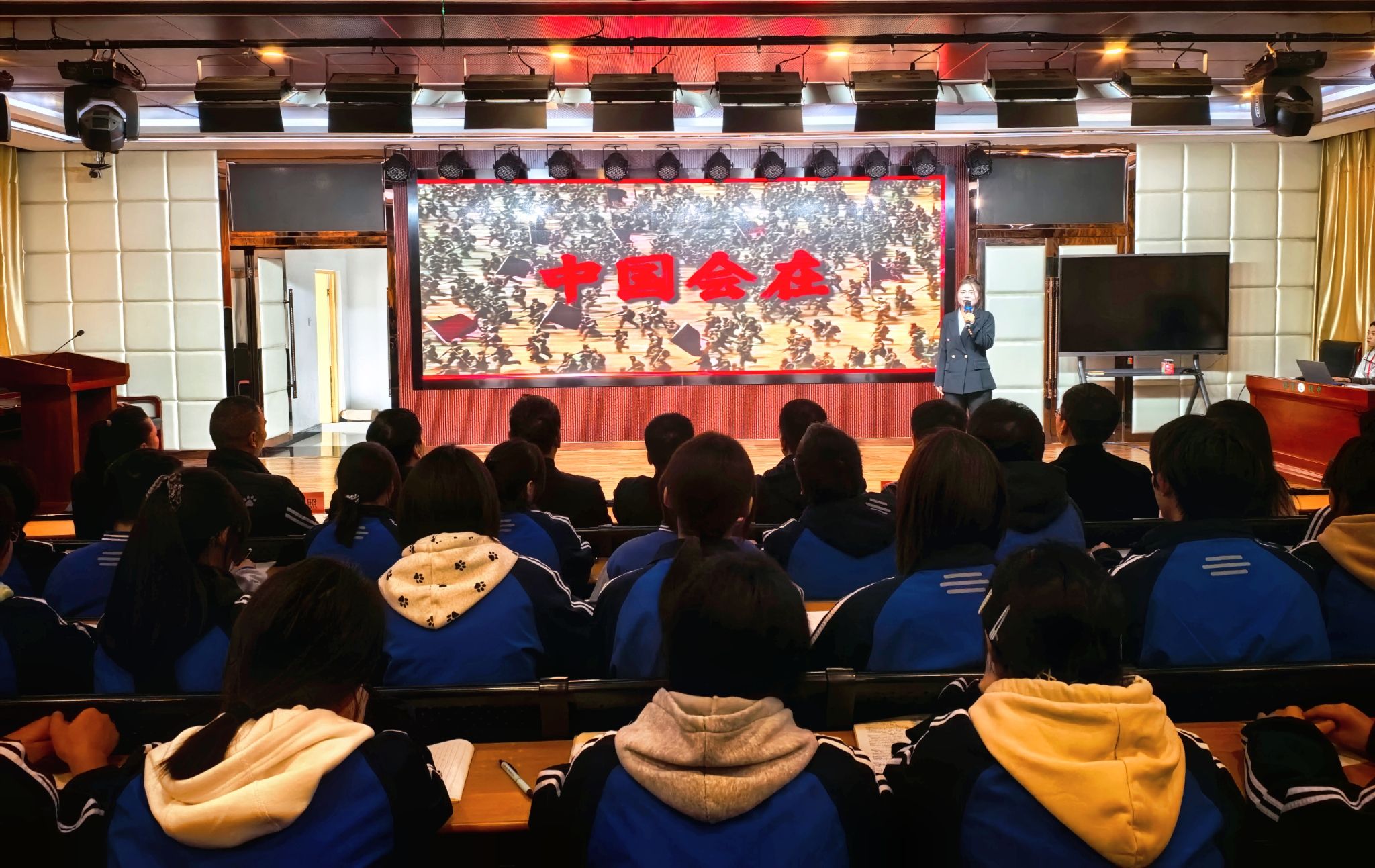 讲师王子佳以 “重温抗战历史,汲取奋进力量” 为题,聚焦抗战少年担当与南泥湾精神 —— 本应无忧的少年在山河破碎时扛起抗争旗帜,传情报、护伤员、守秘密,以赤子之心成不朽丰碑;1941 年根据地遭封锁,359 旅开垦南泥湾,在绝境中践行 “自己动手,丰衣足食”,她鼓励骊山初级中学学生遵循 “感恩向上” 校训与 “尚德、勤奋、好学、和美” 校风,将爱国情融入青春奋斗。讲师张丹丹以 “镜头下的山河与初心” 为主题,借《沉默的荣耀》与三部 “特殊影像” 解读中国精神:摄影师罗瑾用生命守护 “未洗出的微笑”,矿工刘连仁攥十三年 “带血粗布”,战士张宝林逆毒气冲锋,她号召临潼铁路中学学生以 “责任、荣誉、拼搏、梦想” 校训为底色,以 “团结、勤奋、务实” 校风为准则,书写家国担当。讲师石璐以 “篓筐之下,中国脊梁” 为题,讲述抗战时期高校西迁中,徐文昇教授等将 504 块地质标本护在胸前、安全送达西北的故事,彰显教育工作者的文脉担当,鼓励学子脚踏实地、坚守初心,成长为有理想、敢担当的新时代好青年。